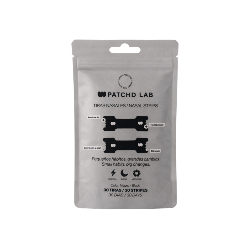 Lava y seca la nariz, retira el protector, Aplica la tira Slim Fit en el puente nasal, presiona los extremos para fijar, retira suavemente tras el descanso o ejercicio.